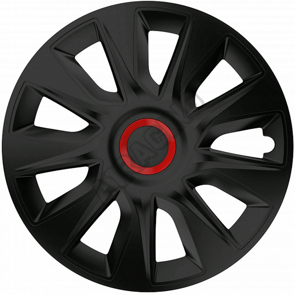 Plastový ozdobný kryt kolies s elegantným dizajnom. Vysoká tuhosť a nádherný čierny design s red stredovým krúžkom.