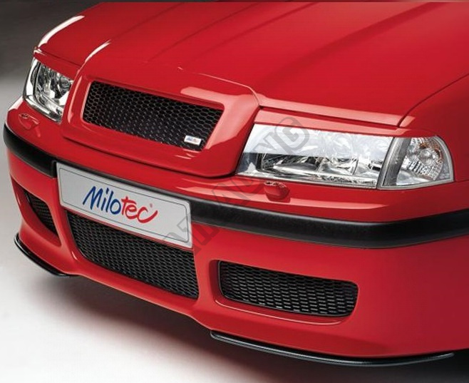 Kryty světlometů Milotec, tzv. mračítka Váš vůz opticky sníží a dodají jeho přední části "nabroušený" agresivnější vzhled. Kryty jsou vyrobeny z černého ABS předurčeného k lakování do barvy vozu. Montáž je jednoduchá, realizuje se lepením.