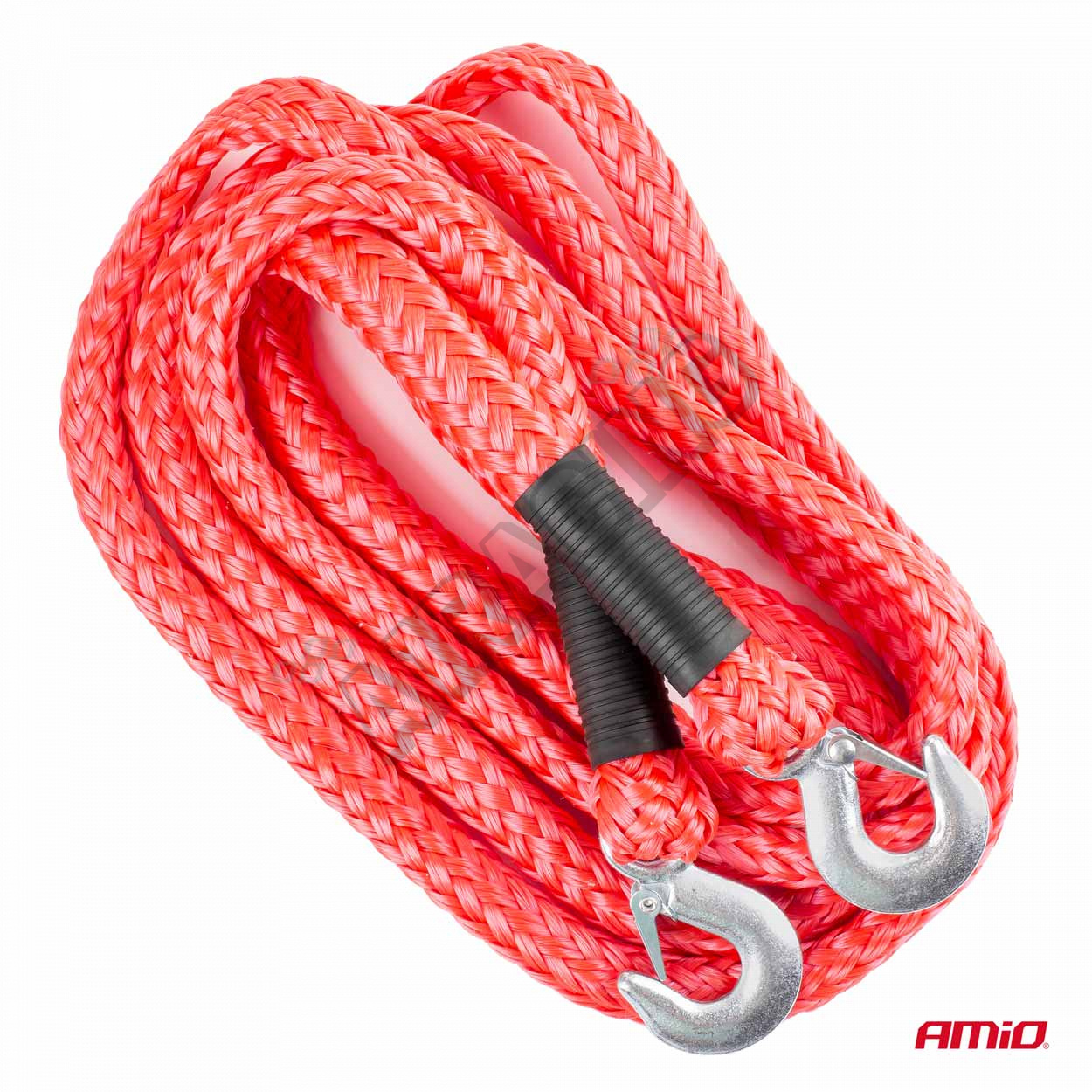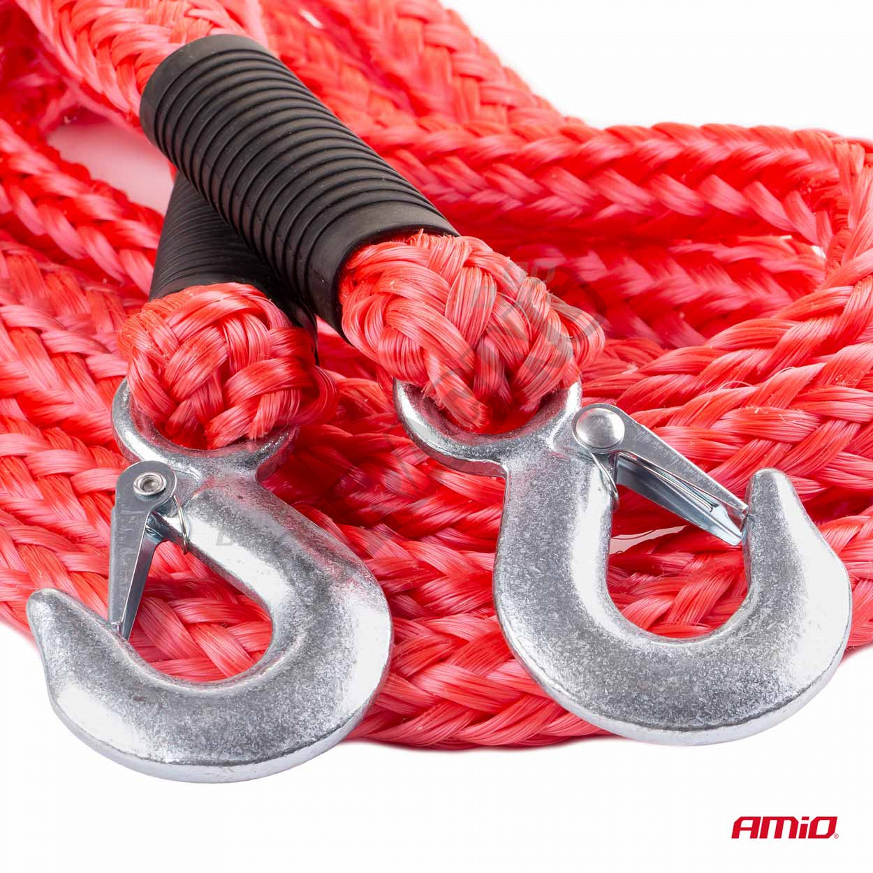 Lano ťažné 2000 kg s karabínami Pevné, pletené ťažné lano, 4 m dlhé Na koncoch sú dva háky s (pruž