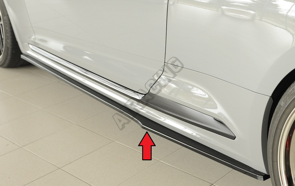 Ľavý bočný prah Audi RS5 B9, F5 Kupé 03/17-02/20 Rieger plast ABS lakovaný do čiernej lesklej farby