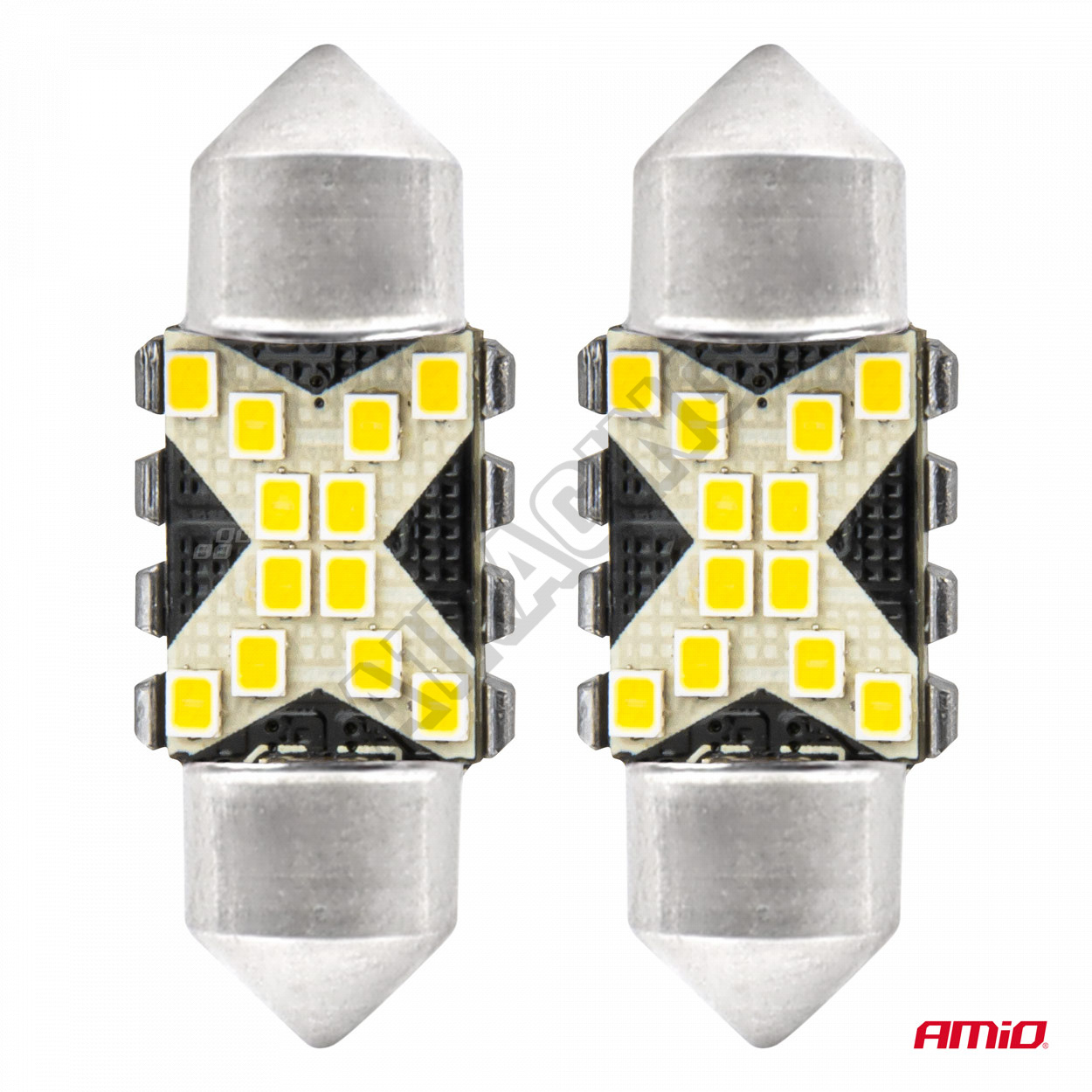 LED žiarovky CANBUS Festoon C5W 12SMD 2016 31mm Biela 12V 24V AMIO-04235
