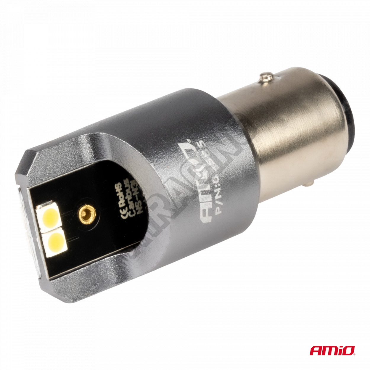 LED žiarovky CANBUS séria PRO BAY15D P21/5W 4x3030 SMD biele 12V 24V AMIO-03585