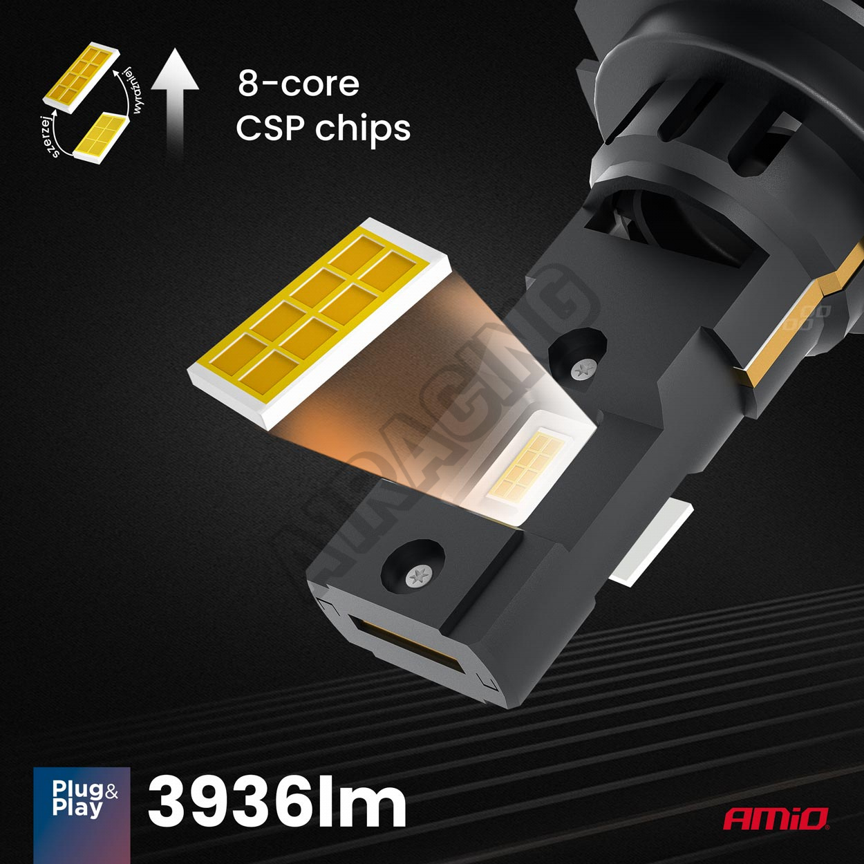 Žiarovky majú LED CHIP 7330, ktorý zabezpečuje veľmi jasný svetelný tok, vďaka čomu sú bezkonkurenčné v porovnaní s tradičnými wolfrámovými žiarovkami alebo xenónovými výbojkami. Ich presné umiestnenie neoslepuje vodičov prichádzajúcich z protismeru.