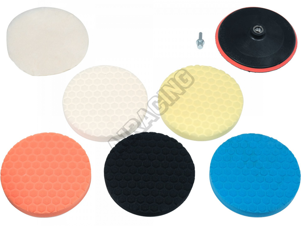 Leštící sada o průměru 180 mm. Lešticí držák se závitem M14 s adaptérem pro držák 8 mm pro maximální otáčky 6000 ot/min.