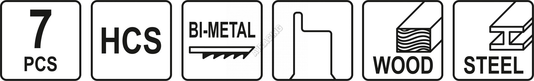 Sada 7 pilových listů pro řezání kovu a dřeva. vyrobeno z HCS a BiM oceli různé velikosti řezných z
