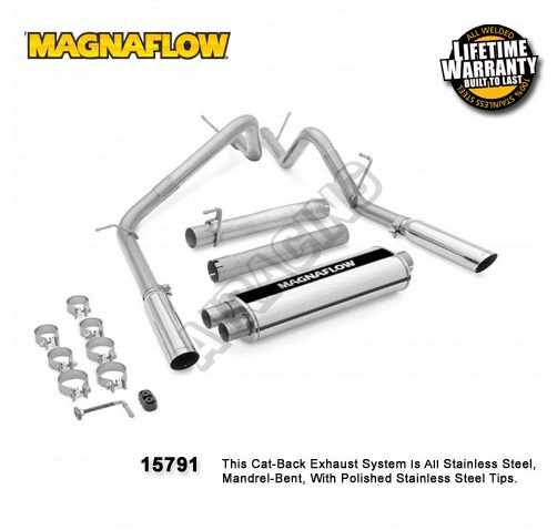 Športový kompletný nerez výfuk v dual prevedení kultovej americkej firmy Magnaflow. Okrem naýšení výkonu okolo 15 koní má tento výfuk tiež nádherný športový zvuk. Pozor - cena výfuku je už vrátane leteckej dopravy.