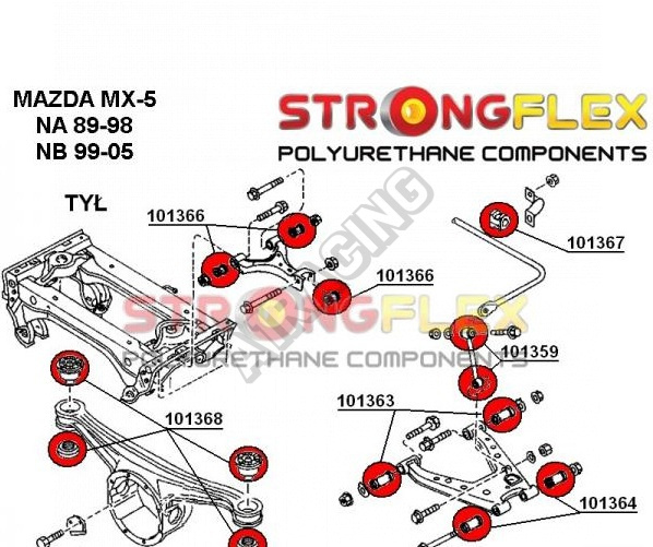 Recenzia k produktu Mazda MX5 1989-98 Strongflex Šport zostava silentblokov len pre zadnú nápravu 20 ks