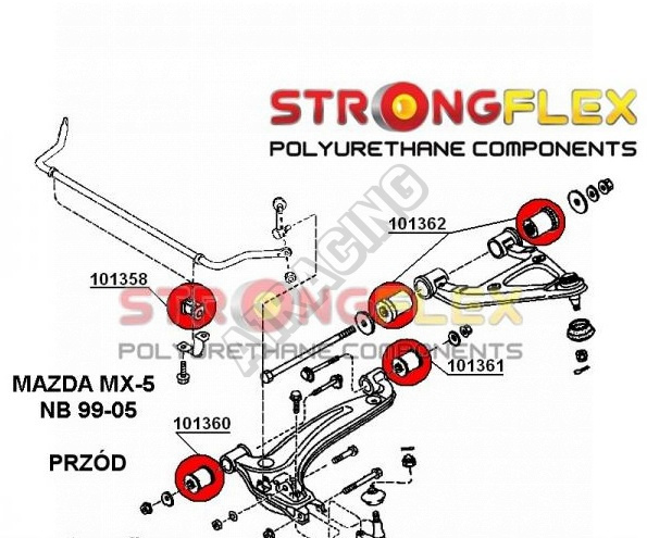 0recenzia produktuMazda MX5 1999-05 Strongflex Šport zostava silentblokov len pre prednú nápravu 10 ks