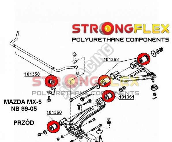 Mazda MX5 1999-05 Strongflex zostava silentblokov len pre prednú nápravu 10 ks obsahuje: