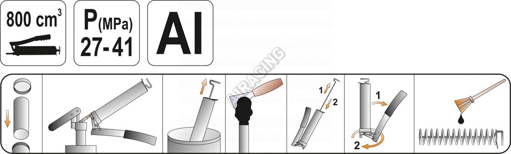 Maznice páková, pro objem maziva 800 ml. Opatřena gumovou hadičkou s kovovým vývodem pro tzv. pícha