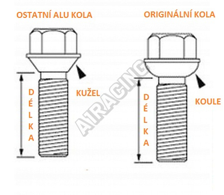 Originální kola Škoda + koncern VW GROUP má tvar šroubů v dosedací ploše na kolech do koule, pokud už nemáte kola originální, ale z druhovýroby, máte už pravěpodobně uchycení do kužele viz foto v galerii fotek