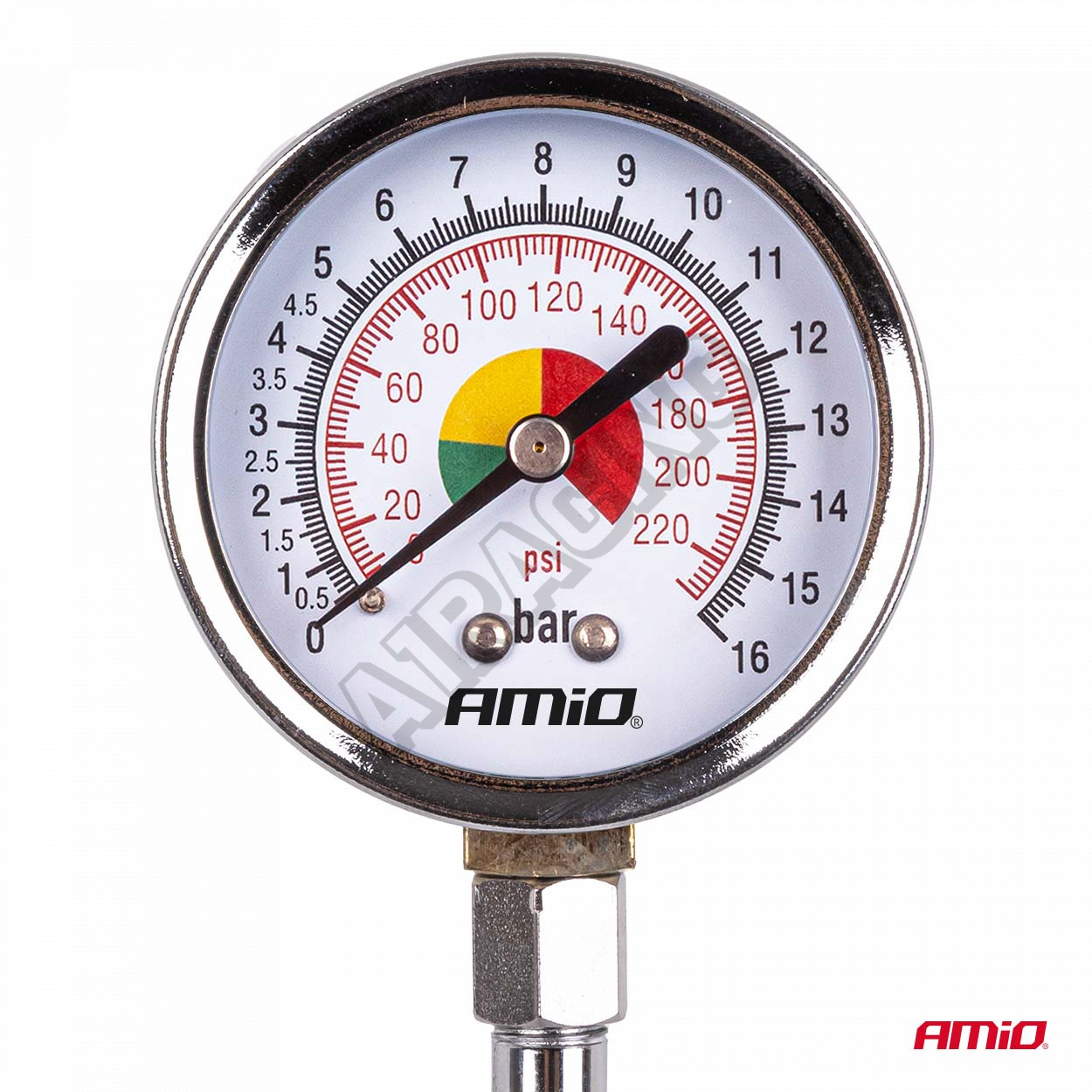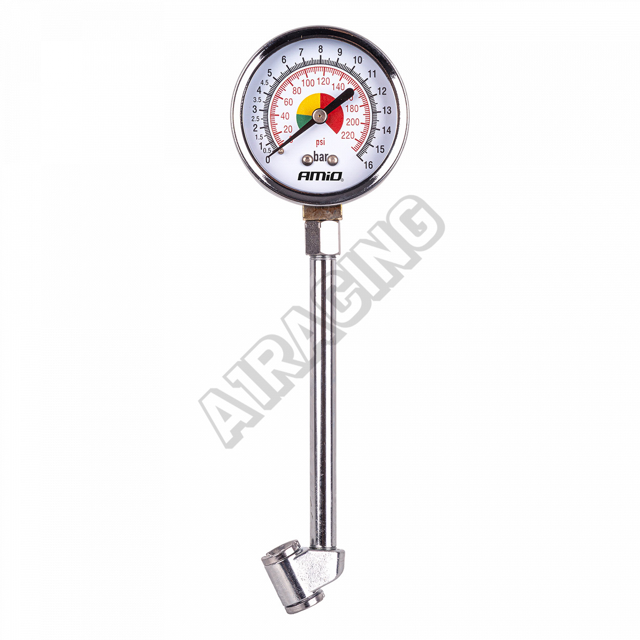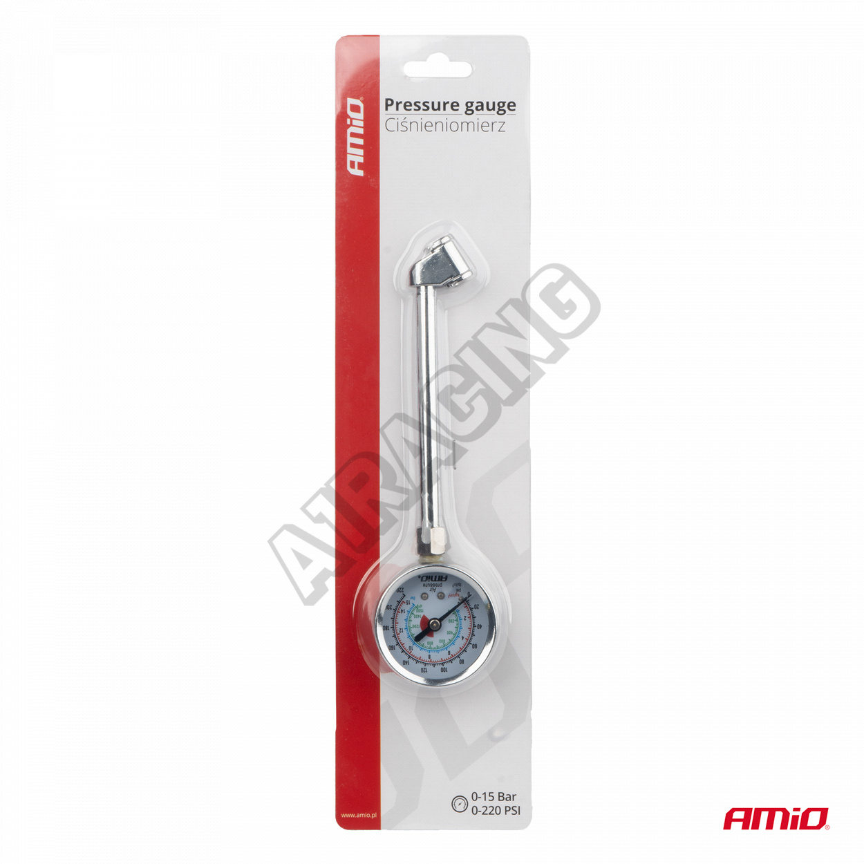 Profesionálny celokovový pneumerač, rozsah merania až 0 - 15Atm, vhodné na meranie tlaku v pneumatikách. Charakteristika: - Profesionálny celokovový pneumerač - Rozsah: 0 - 15 Atm - Materiál: celokovový/ plast - Vhodné na meranie tlaku v pneumatikách až do hodnoty 15 Atm