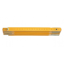 Klasický dřevěný skládací metr vyrobený z bukového dřeva, lakovaná žlutě, chráněná proti působení vlhkosti.