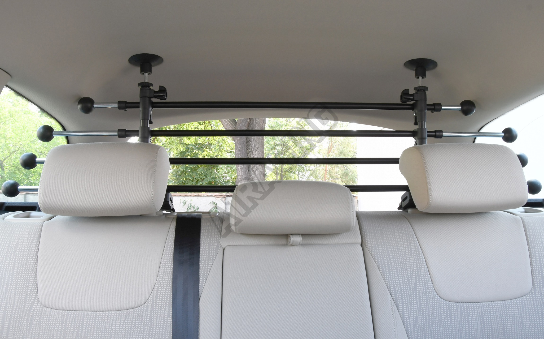 Montáž je velice jednoduchá a zajišťuje přizpůsobení různým tvarům a rozměrům kufrů vozidel a to bez použití nářadí. Připevňuje se na hlavové opěrky zadních sedadel.