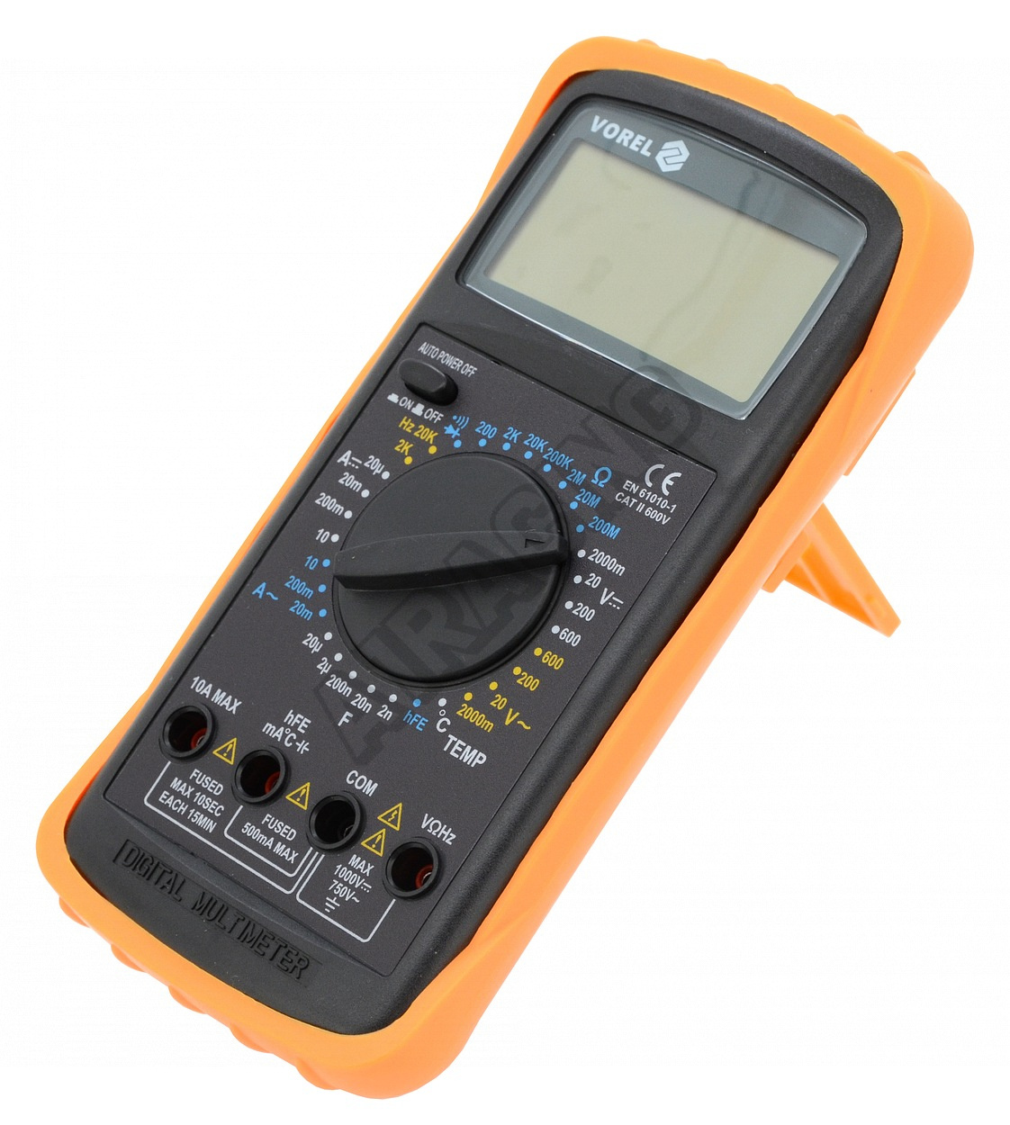 Namerané hodnoty sa zobrazujú na prehľadnom LCD displeji odolného, plastového tela prístroja. Telo je navyše umiestnené v odnímacom silikónovom obale, ktorý zaisťuje čiastočnú ochranu pred vlhkosťou, nečistotami av neposlednom rade chráni prístroj pred vibráciami. K meraču sú priložené kvalitné káble s meracími hrotmi.