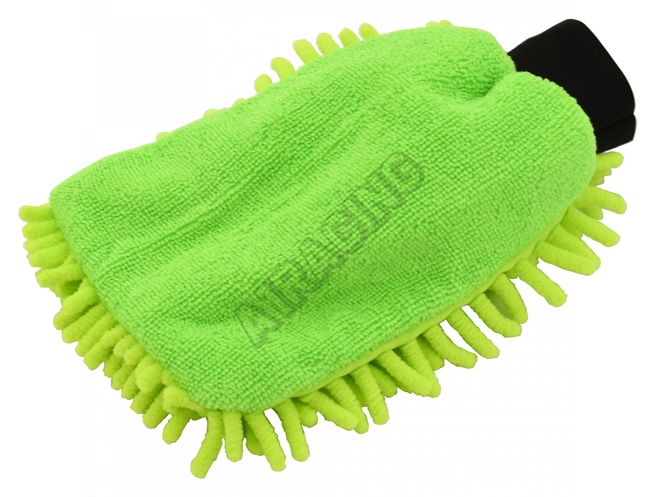 * Rukavice s třásněmi je ideální k použití metodou dvou kbelíků, kdy v jednom je voda s autošamponem a ve druhém samotná voda k oplachu zachycených nečistot na rukavici.