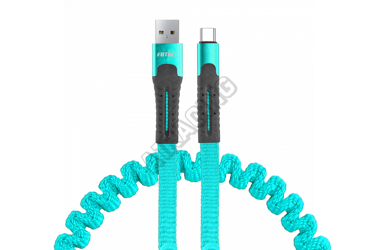 Nabíjací kábel pružinový USB+USB-C 120cm FullLINK UC-14 Univerzálne prevedenie pre všetky zariadenia
