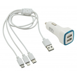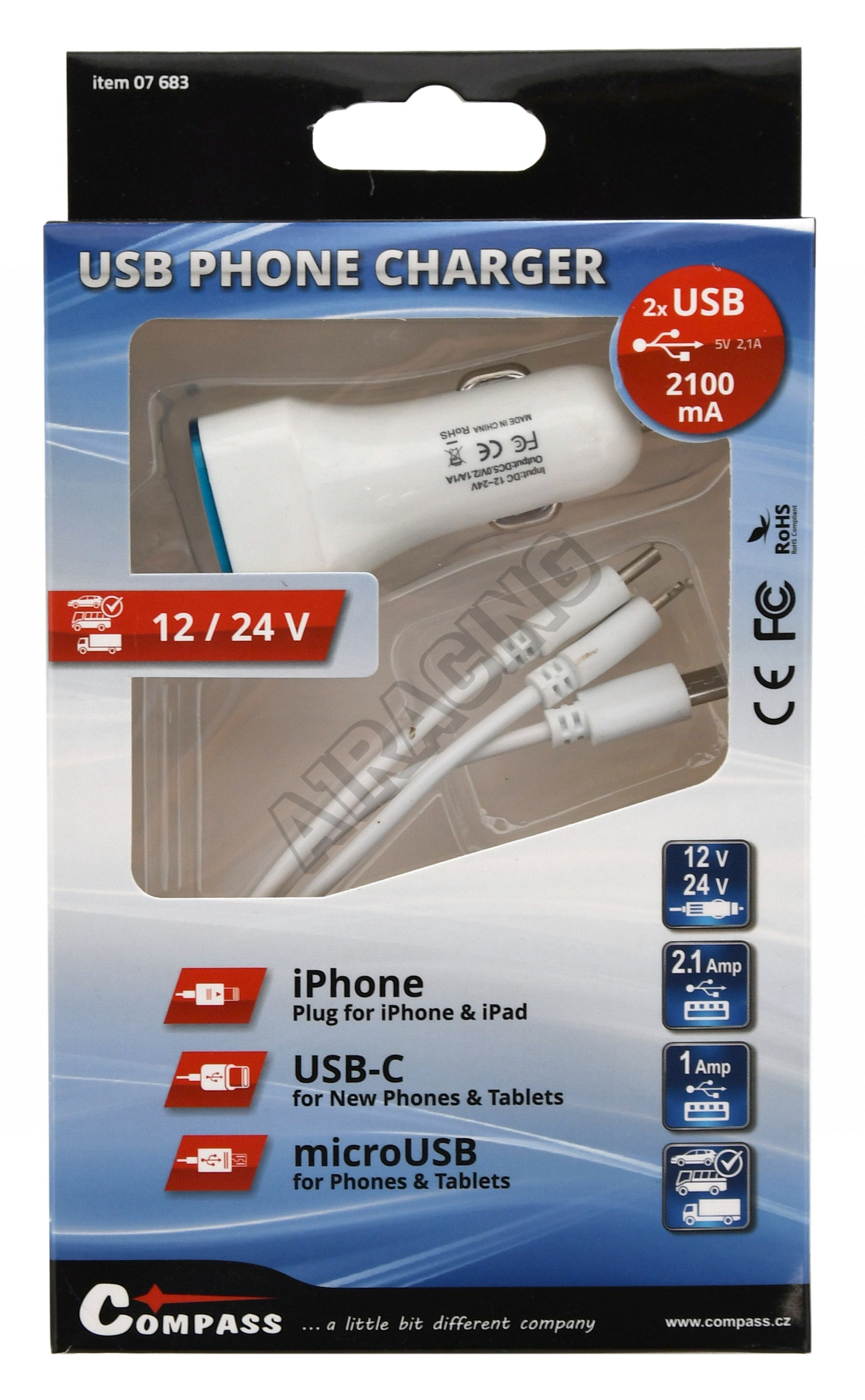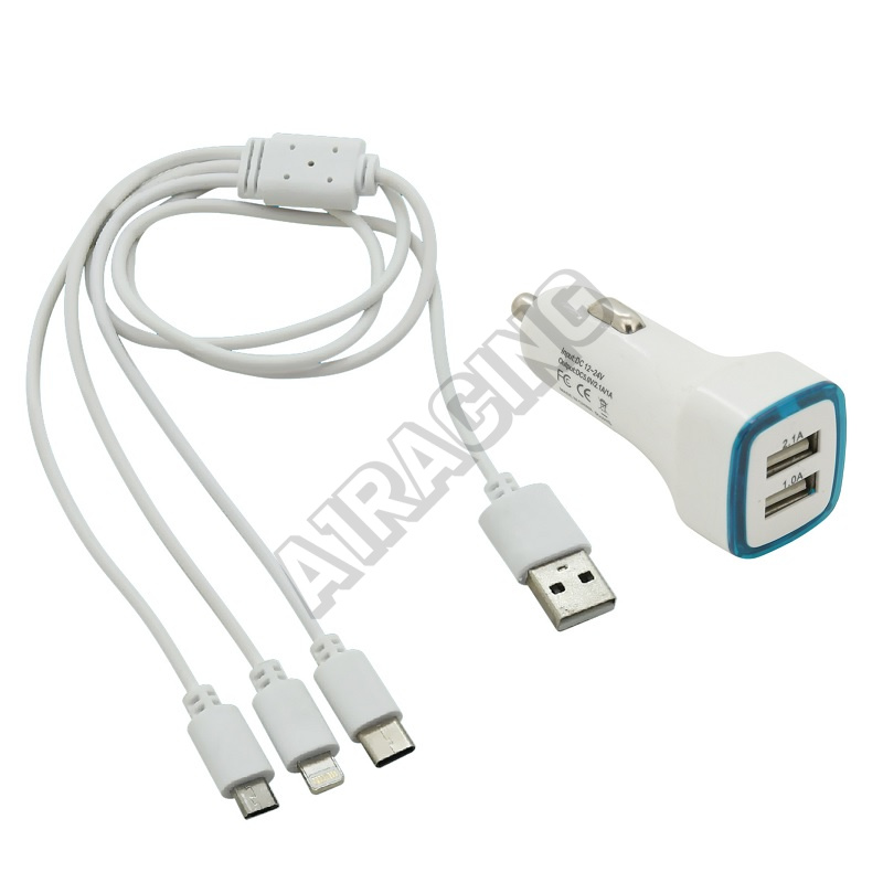 Nabíjačka telefónu USB 3v1 (micro USB, iPhone, USB C) Nabíjačka, USB zástrčka pre 12V alebo 24V zás