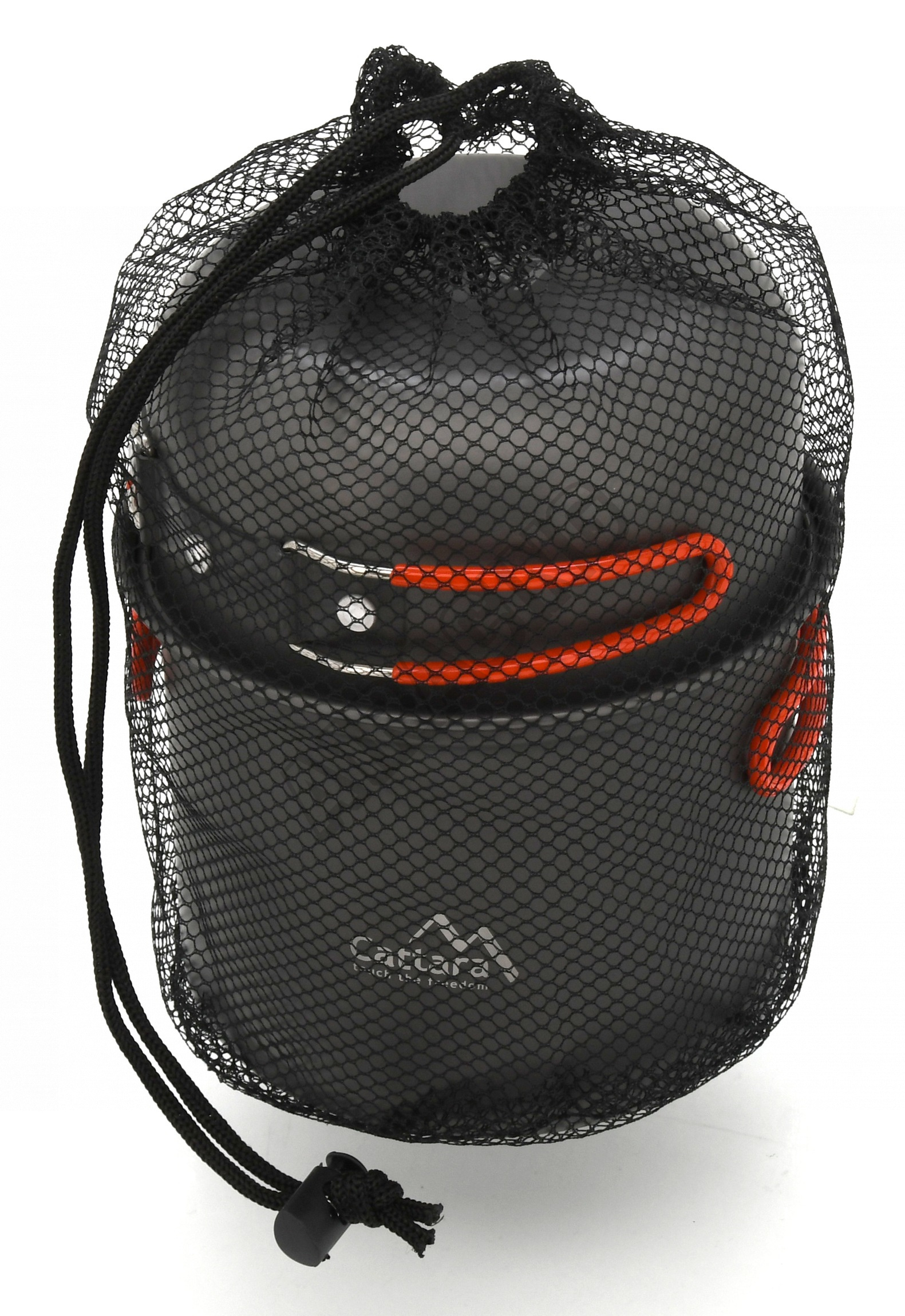 Jednotlivé části sady jsou rozměrově přesně odstupňovány a dají se tak složit dohromady, čímž ušetří spoustu místa. Navíc je vše uloženo v praktické sítěné tašce.