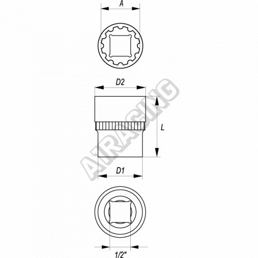 Nástavec vícezubý (SPLINE) se zakončením 1/2".