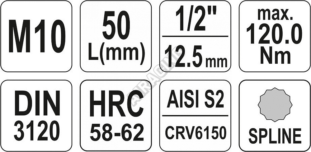 Profesionální šestihranný bit Vícezubý (SPLINE) pro 1/2" ráčnu.