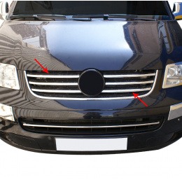 Nerez chróm lišty pred masky Omtec VW Multivan /Caravelle T5 - 6-dielna sada (pre vozidlá so 6 lame