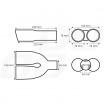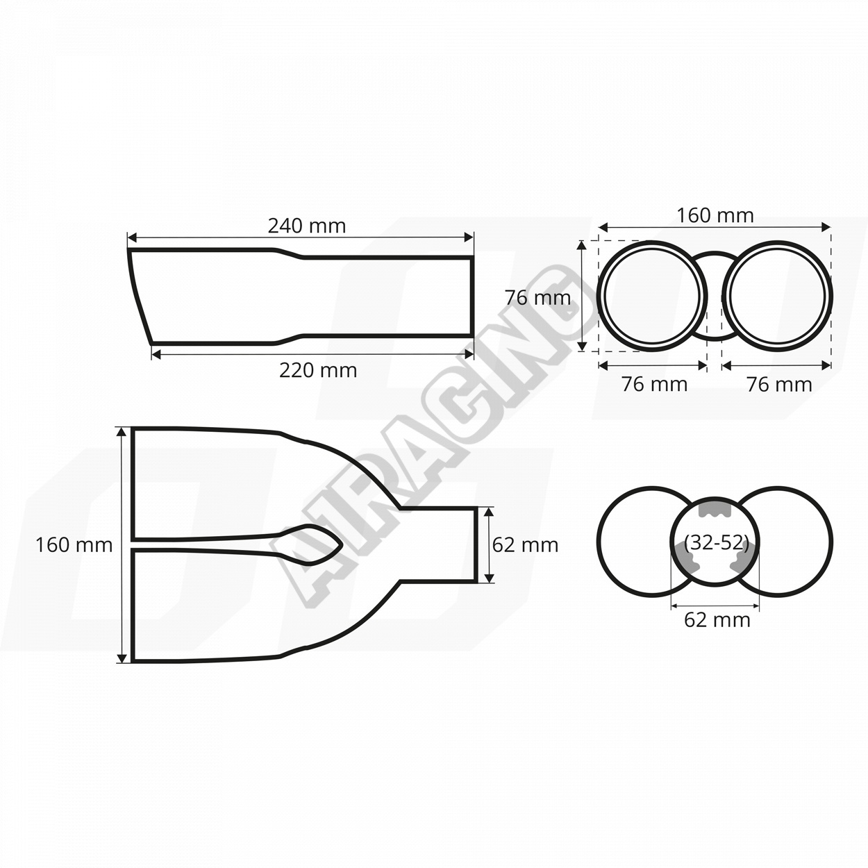 Rozmery výfukovej koncovky: dĺžka 240 mm, priemer koncovky 2 x 76 mm, šírka 160 mm, priemer pre nasadenie 32-52 mm, pre navarenie až 62 mm. Vo vnútri koncovky je ešte dizajnová mriežka, ktorá bude viditeľná zo zadného pohľadu auta.