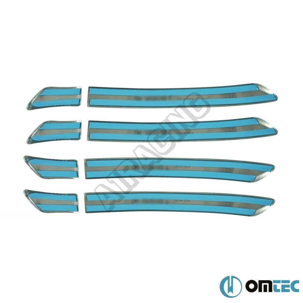 Pozor: Každý tento diel sa musí lepiť aspoň pri teplote 10 °C, kde pred inštaláciou musí byť lepená časť úplne čistá a suchá, aby vnútorný polep sa perfektne uchytil. Pokiaľ chcete maximalizovať uchytenie. Môžete na niekoľkých miestach bodovo pridať 2-zložkové lepidlo na kov/plast. Výsledkom bude pevné spojenie, ktoré už nepovolí – ale nie je to podmienkou, dobre očistený a nalepený diel len na obojstranné pásky ide veľmi ťažko zložiť. Preto je dobré hneď na prvýkrát daný diel dobre presne nasadiť.