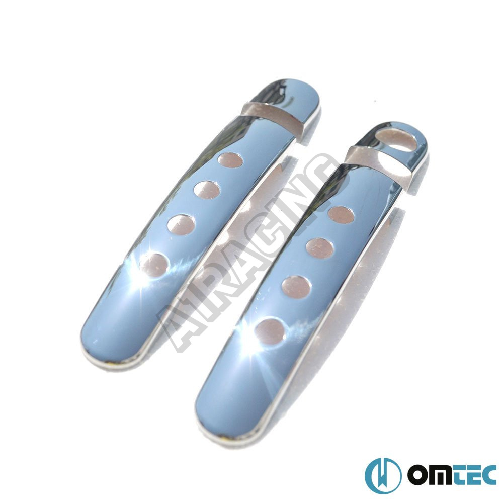 Nerez leštené kryty kľučiek dierované Omtec 4 ks (predné dvere) - 100% nerez leštené prevedení - p