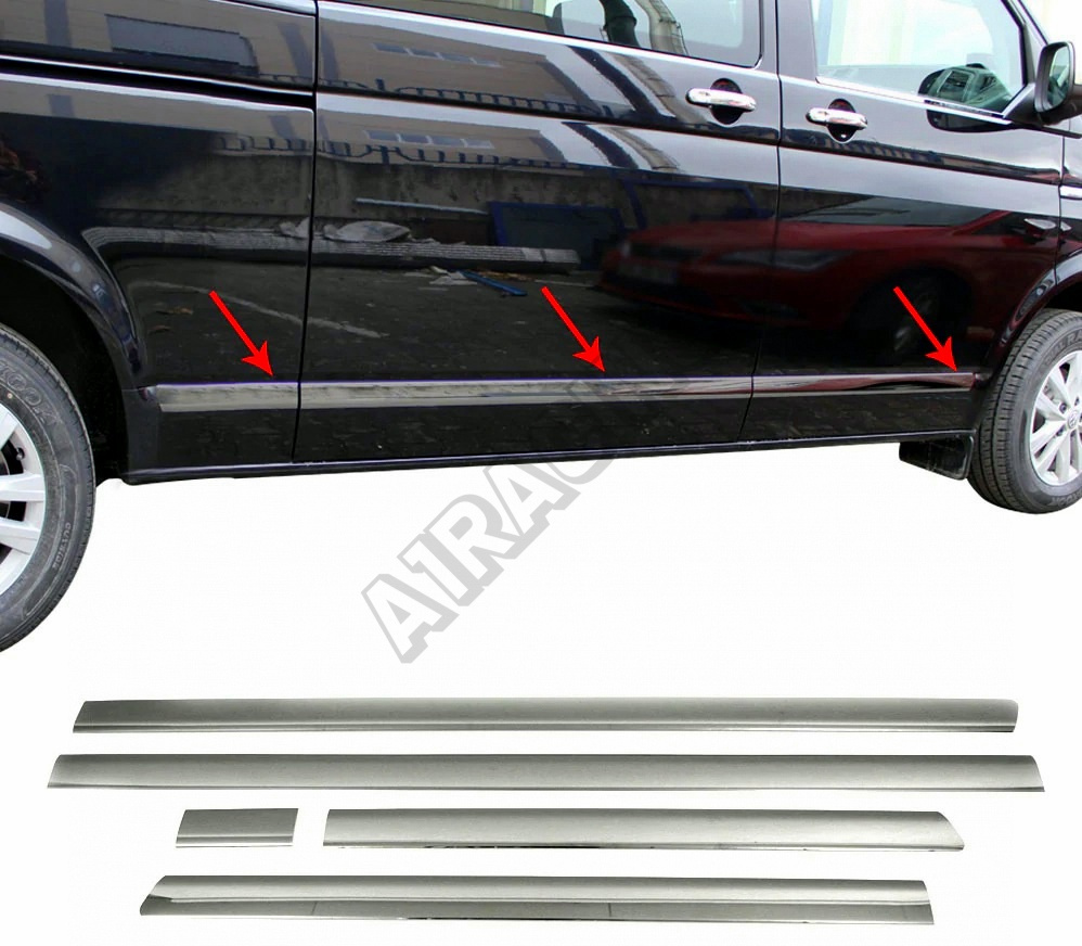 Nerez lišty bočných dverí Omtec 5 ks VW, T5, T6 (krátka verzia s 1x posuvnýma dverami v pravo)