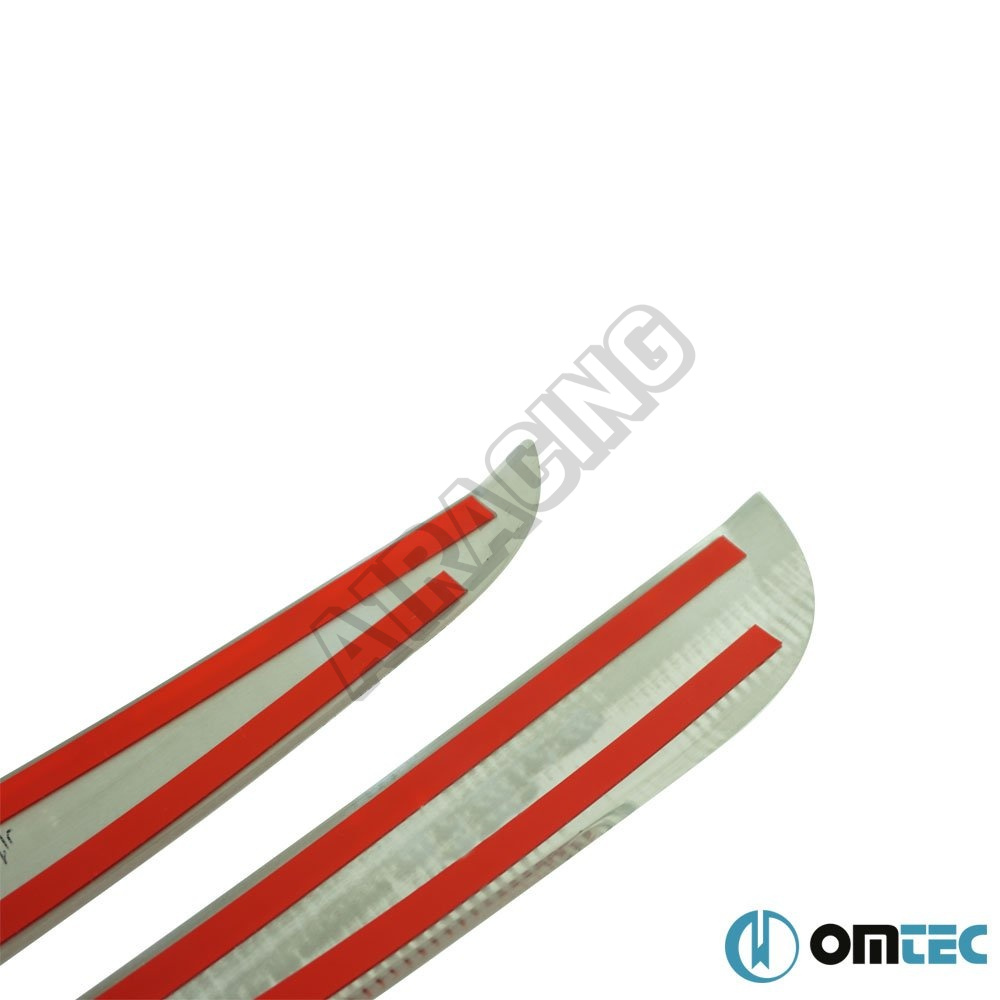 Pozor: Každý tento diel sa musí lepiť aspoň pri teplote 10 °C, kde pred inštaláciou musí byť lepená časť úplne čistá a suchá, aby vnútorný polep sa perfektne uchytil. Pokiaľ chcete maximalizovať uchytenie. Môžete na niekoľkých miestach bodovo pridať 2-zložkové lepidlo. Výsledkom bude pevné spojenie, ktoré už nepovolí – ale nie je to podmienkou, dobre očistený a nalepený diel len na obojstranné pásky ide veľmi ťažko zložiť. Preto je dobré hneď na prvýkrát daný diel dobre presne nasadiť.