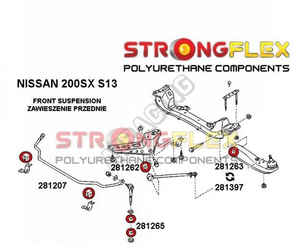 Nissan 200SX S13 1988-93 StrongFlex Sport sestava silentbloků jen pro přední nápravu 8 ks obsahuje: