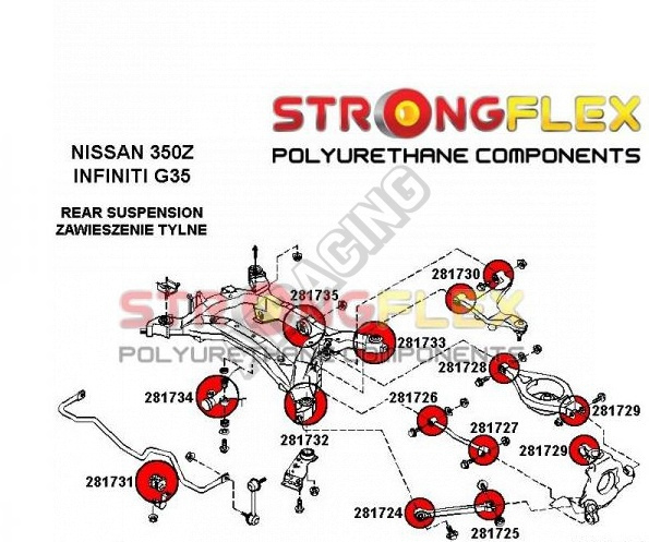 Nissan 350Z StrongFlex Sport sestava silentbloků jen pro zadní nápravu 20 ks Tvrdší silentbloky dod