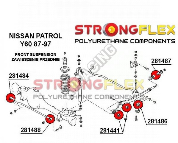 Nissan Patrol Y60 1987-97 StrongFlex Sport sestava silentbloků jen pro přední nápravu 10 ks obsahuje: