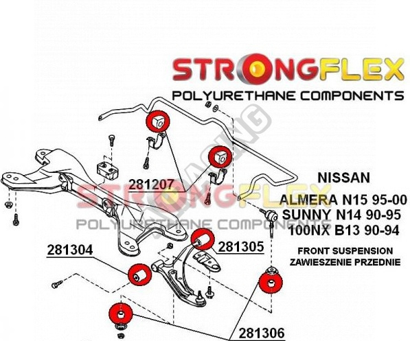 Nissan Sunny StrongFlex Sport sestava silentbloků jen pro přední nápravu 7 ks Tvrdší silentbloky do