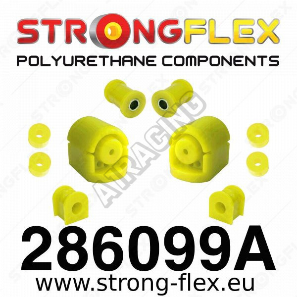 Tvrdší silentbloky dodá vašemu autu lepší kontrolu i jízdní stabilitu hlavně při průjezdech v zatáčkách. Firma StrongFlex vyrábí tyto komponenty z kvalitnějších materiálů než jsou z prvovýroby, dodává 2 tvrdosti a to základní červenou 80 ShA, která je o něco tvrdší než oem provedení a potom žlutou sport o tvrdosti 90 ShA, která se už hodí spíše pro sportovní účely. V galerii fotek je vidět použití jednotlivých silentbloků