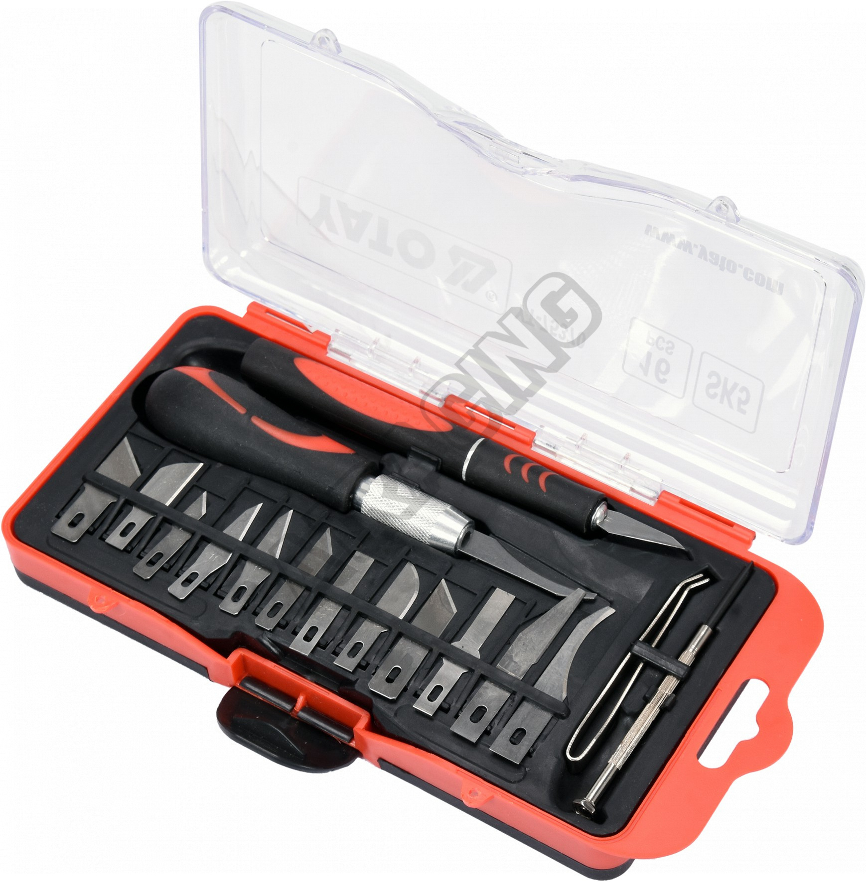Súprava 16 dielov presných nožov v praktickom balení. Vyrobené z odolnej nástrojovej ocele SK5 Obsah