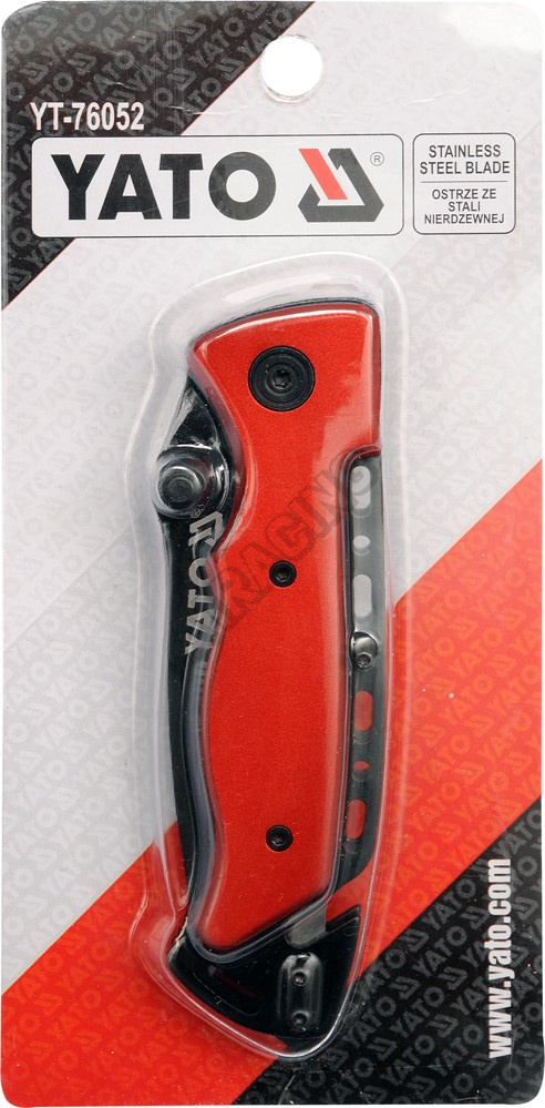 Nôž je určený predovšetkým pre milovníkov nožov a fanúšikov značky Yato. Čepeľ dĺžky 95 mm je zhotovená z kvalitnej nerezovej ocele, lakovanej do matnej, čiernej farby a je navyše vybavená ozubením na konci ostria. Tvar čepele „drop point“ je najuniverzálnejšia lovecká čepeľ, je vhodná na porciovanie mäsa i sťahovanie kože, ale vďaka zníženej špičke, možno využiť aj na bodanie.