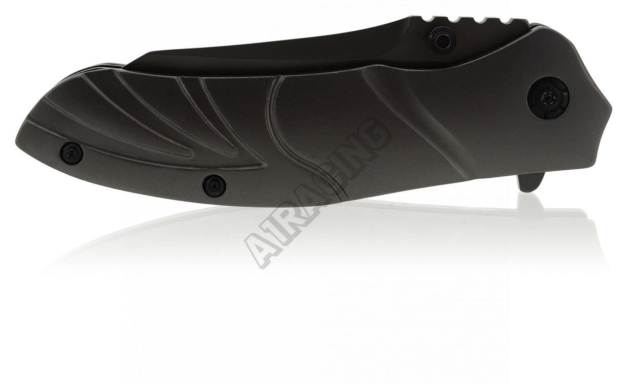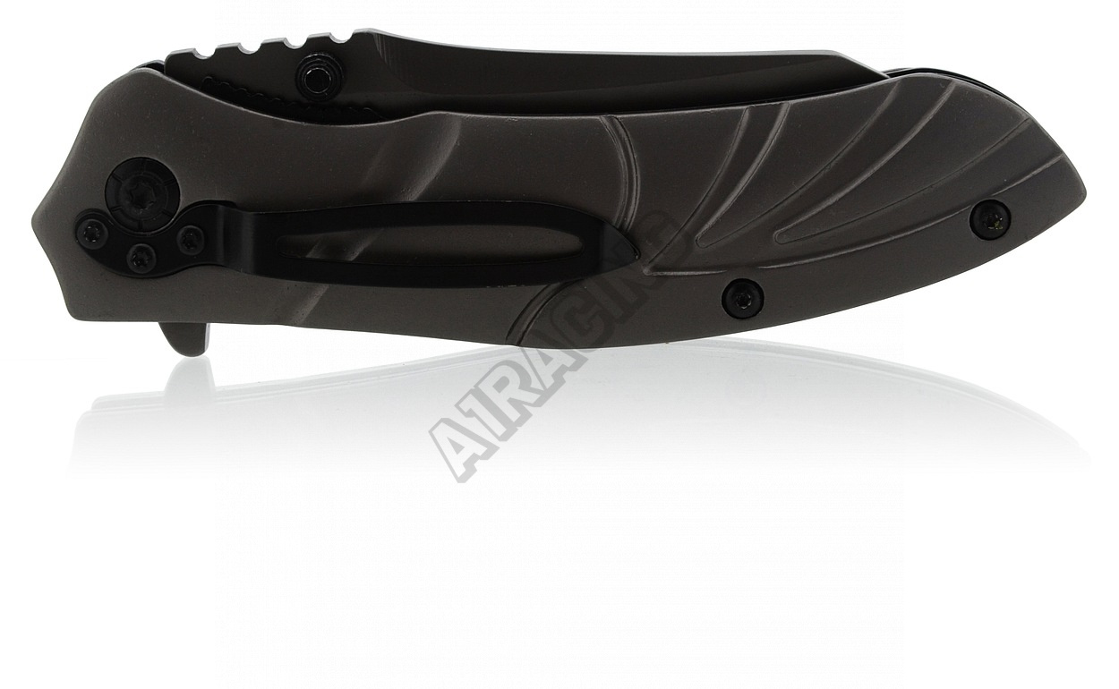Rukojeť je doplněna klipsem k přychycení za okraj kapsy, opasek apod. Střenky jsou kvalitně zpracovány z nožířské oceli 420J1 potažené titanem.