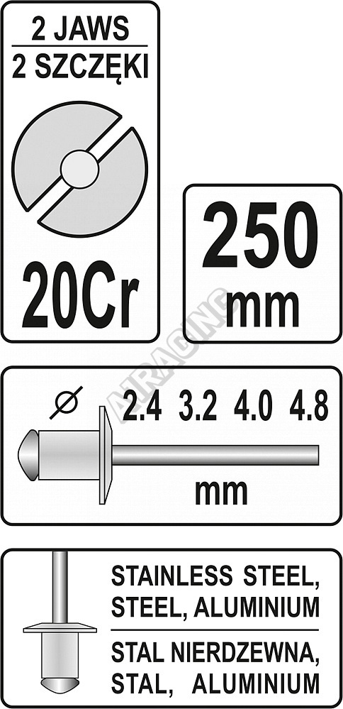 | rozměr nýtů | 2,4; 3,2; 4; 4,8 mm |