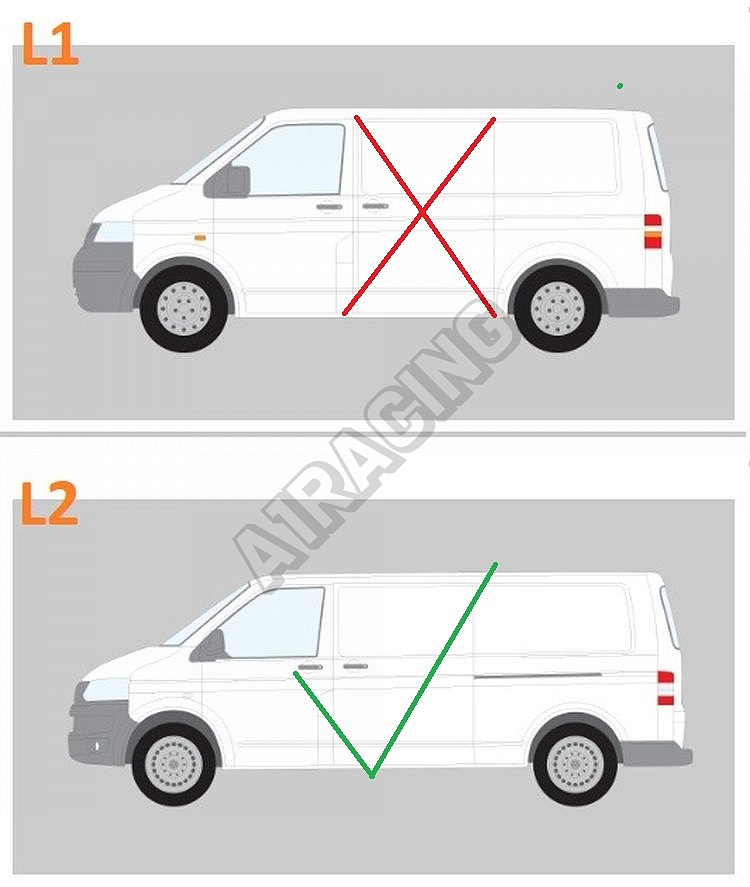 Určené pre Volkswagen Transporter T5 s dlhším rázvorom L2. Nie je vhodné pre verzie L1 (krátky rázvor) viď foto v prílohe.