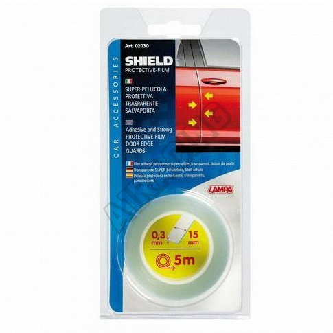 Transparentná samolepiaca ochranná páska 5m talianskej firmy Lampa. Priehľadná flexibilná páska vhodná k ochrane hrán dverí aj ostatných častí karosérie. Vhodná ochrana proti poškriabaniu laku. Sila pásky je 0,3 mm.
