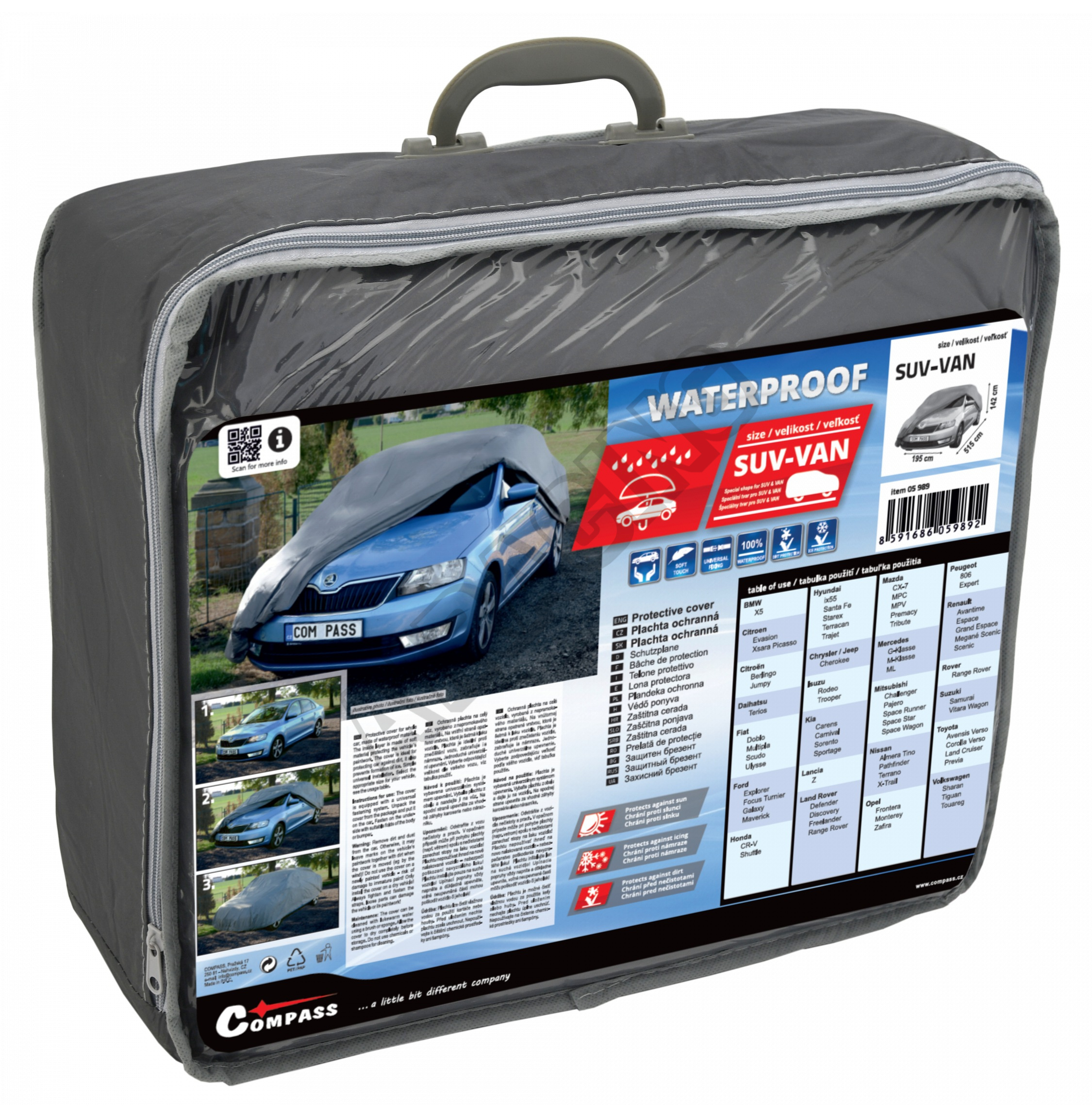 Ochranná plachta na celé vozidlo, vyrobené z veľmi odolného nepremokavého materiálu. Na vnútornej strane opatrené vrstvou, ktorá je šetrná k laku vozidla.