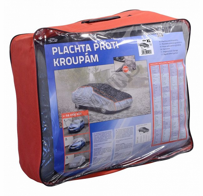 Ochranná plachta proti krupobitiu, na prekrytie celého vozidla. Vysoká odolnosť proti poveternostným vplyvom, vodeodolná. Horná časť vystužená zosilneným materiálom, ktorý dokáže absorbovať nárazy krúp pri krupobití a tým zamedzí poškodeniu vozidla.