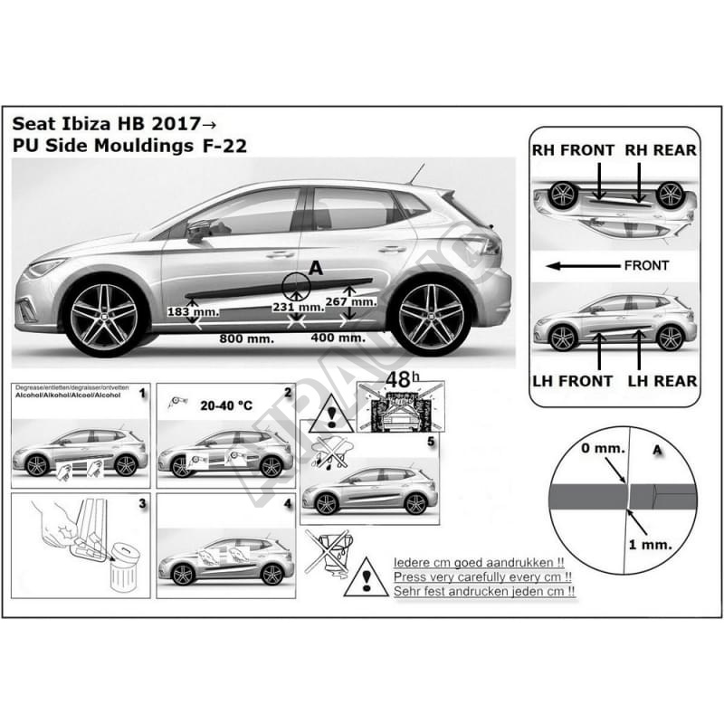 0recenzia produktuOchranné bočné lišty na dvere, Seat Ibiza V, 2017+, HTB
