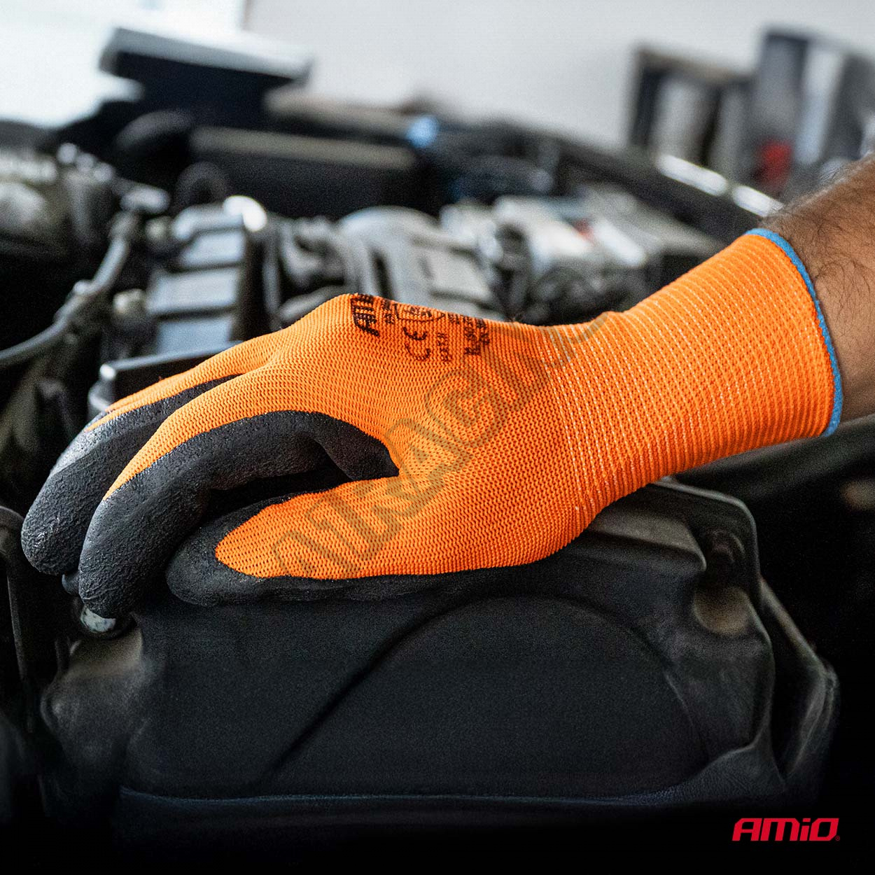 Ochranné rukavice polyesterové potiahnuté latexovou penou veľkosť 10 2132X 4ks. AMIO-04641