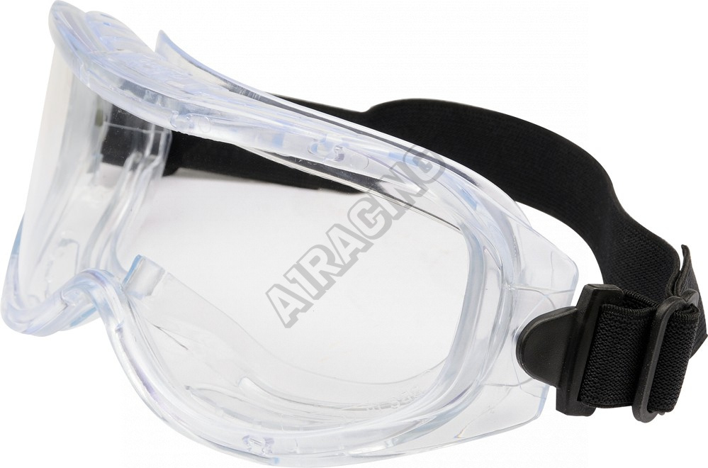 Ochranné okuliare z polykarbonátu, s bočným odvetrávaním as nastaviteľným nylonovým pásikom.