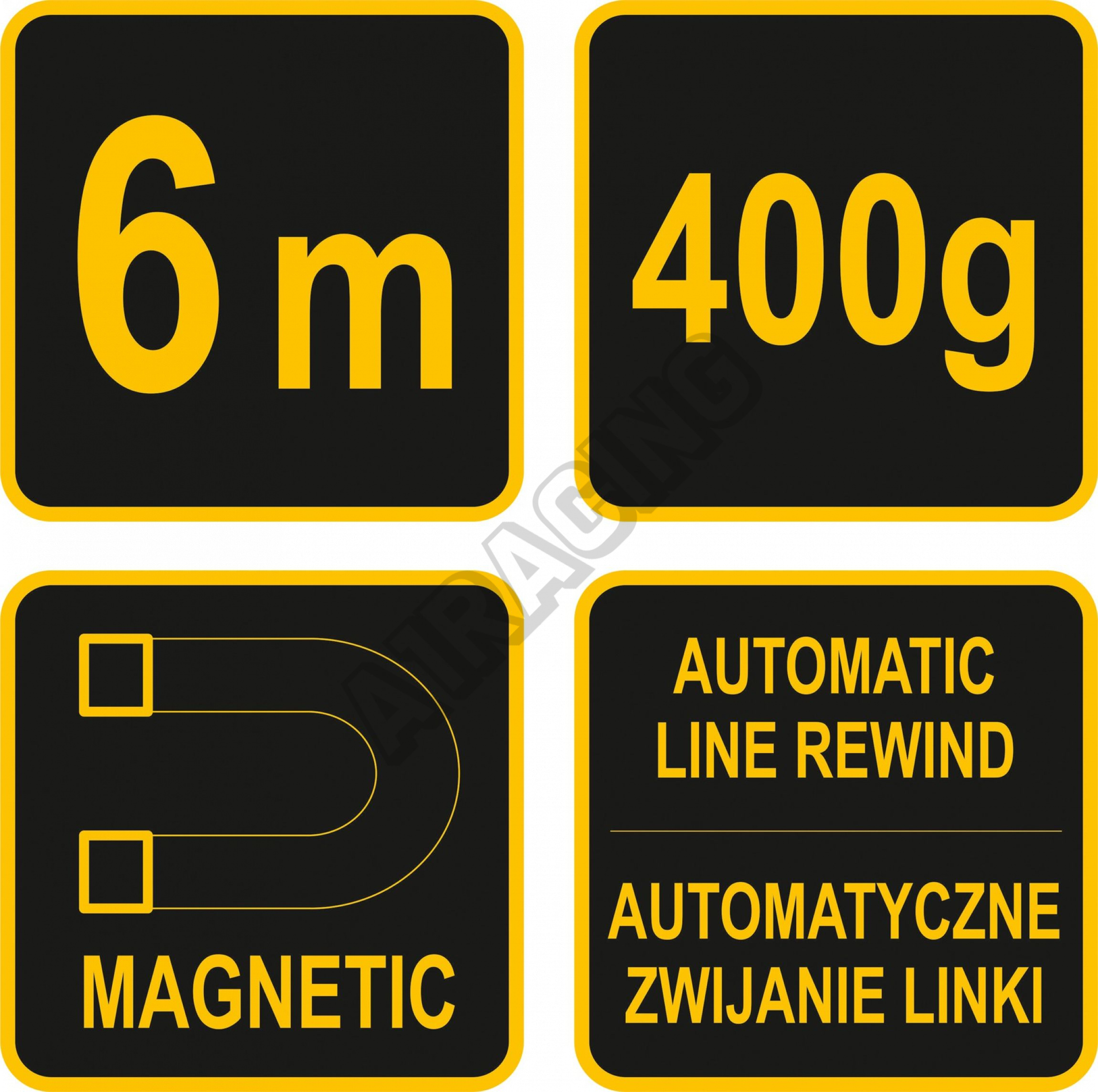 Olovnice je opatřena velmi silným magnetem pro upevnění na kov na svislé konstrukční prvky. Kazeta je opatřena mechanismem pro automatické navíjení.