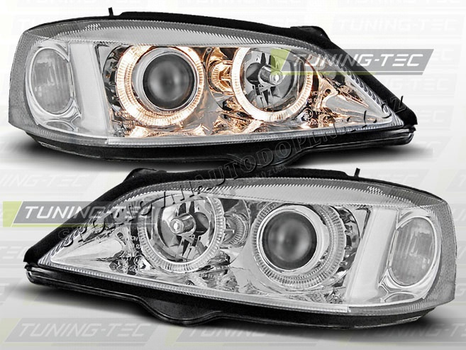 OPEL ASTRA G 1997-04 PŘEDNÍ ČÍRÁ SVĚTLA ANGEL EYES CHROME