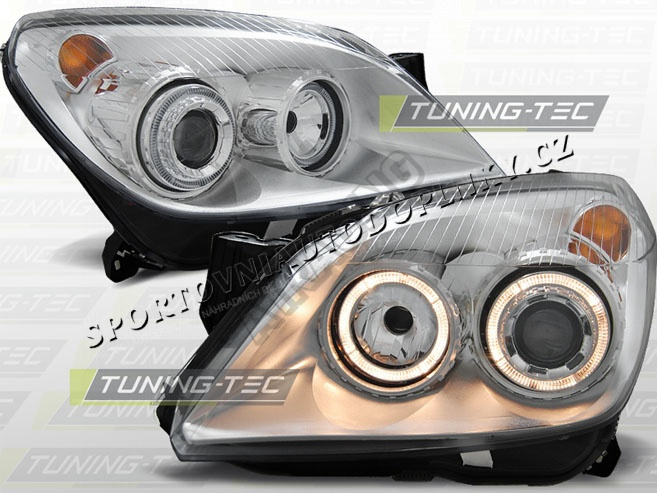 OPEL ASTRA H 2004-09 3.5D PŘEDNÍ ČÍRÁ SVĚTLA ANGEL EYES CHROME